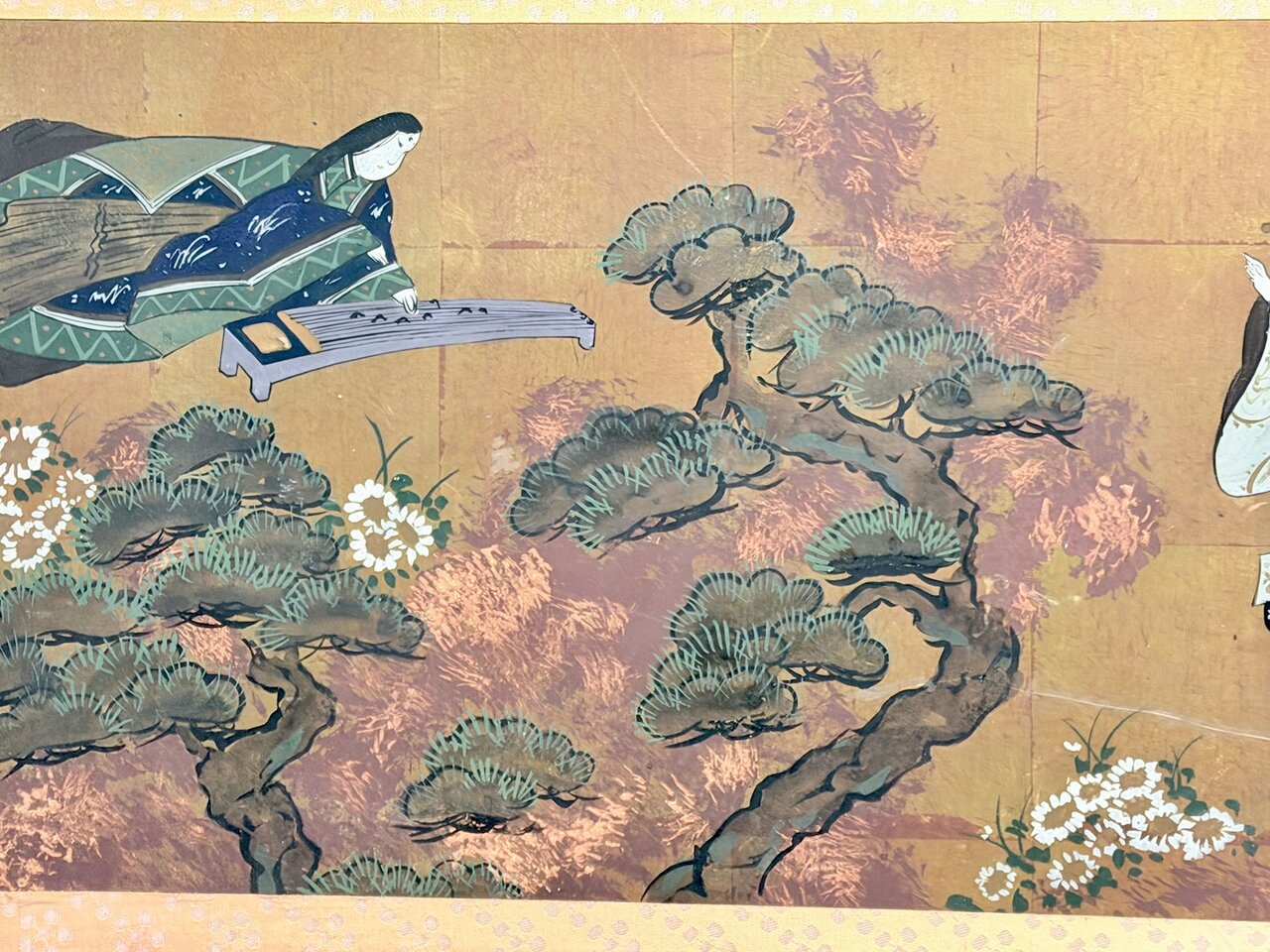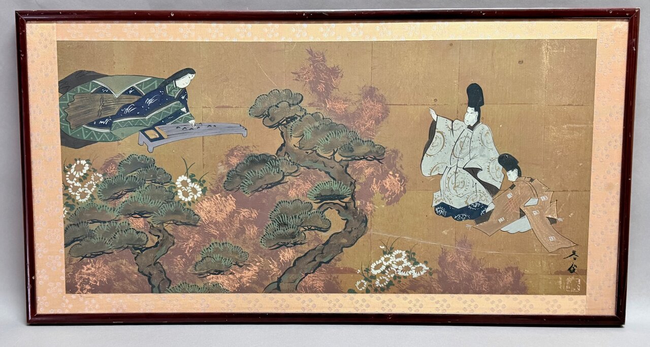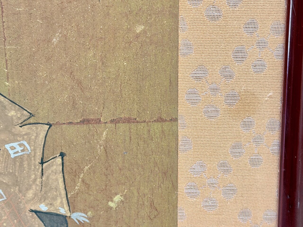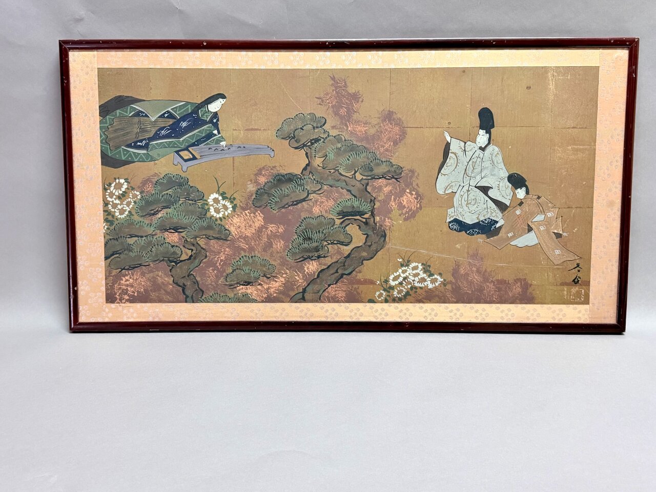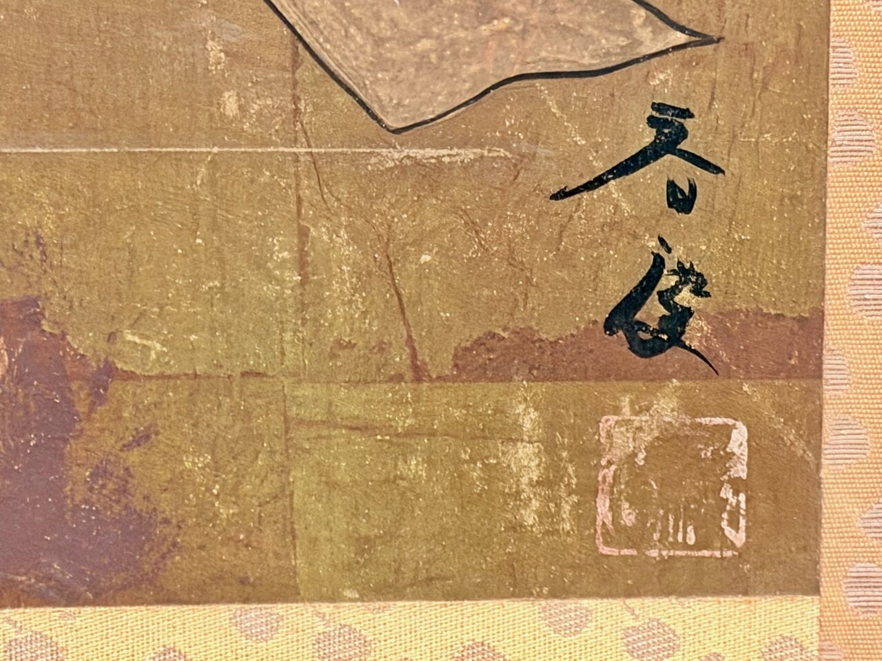 - Bld: klassisch, Seiden-Golduntergrund wie Fusuma auf Sprossenrahmen montiert