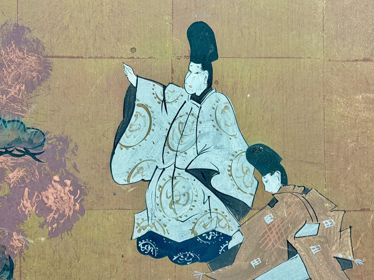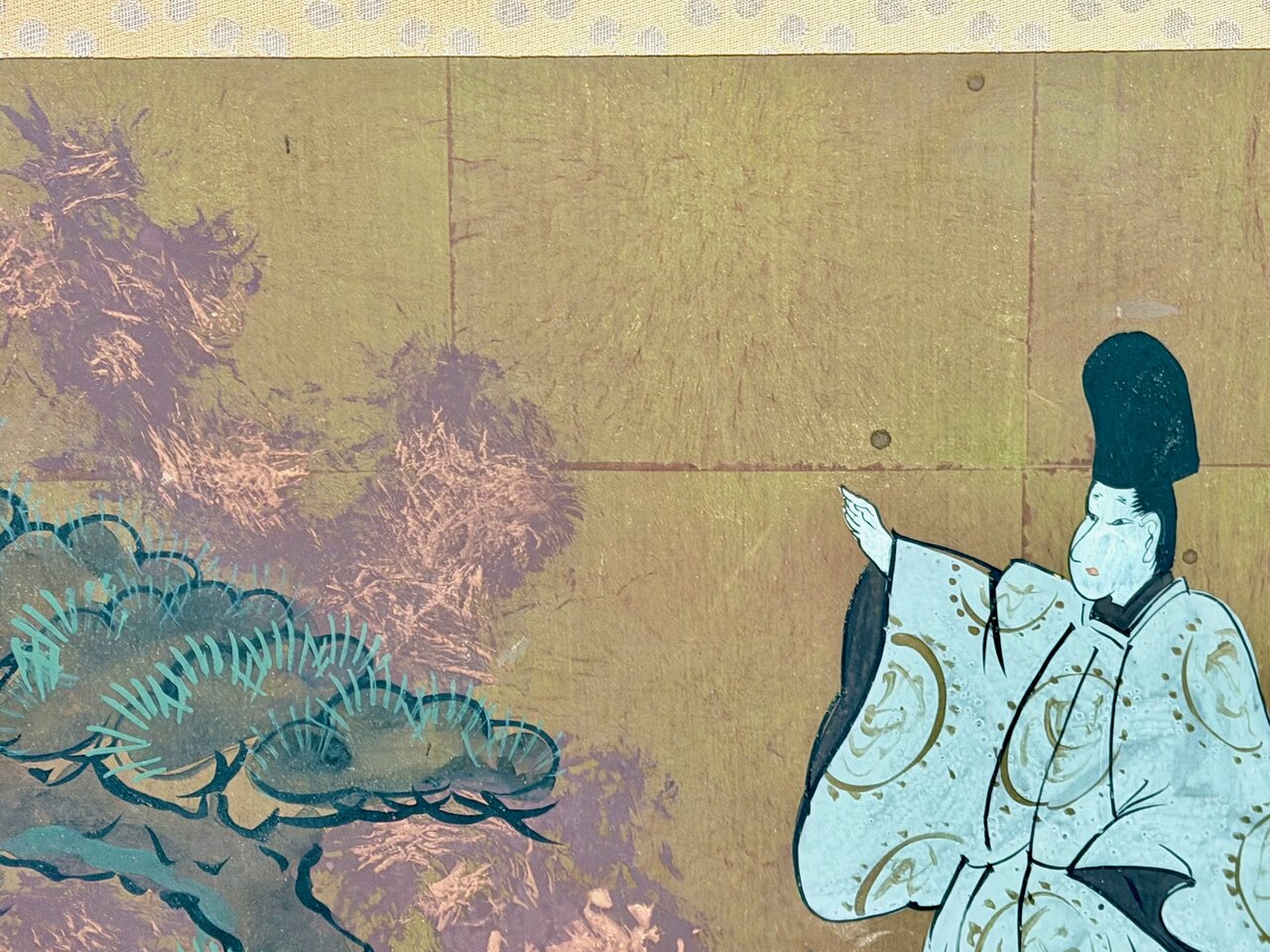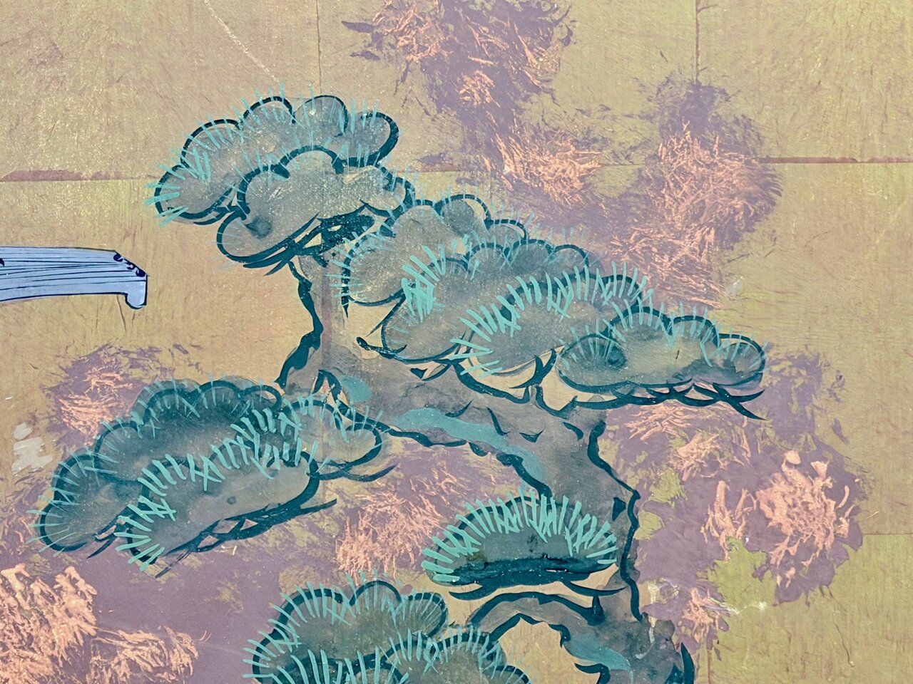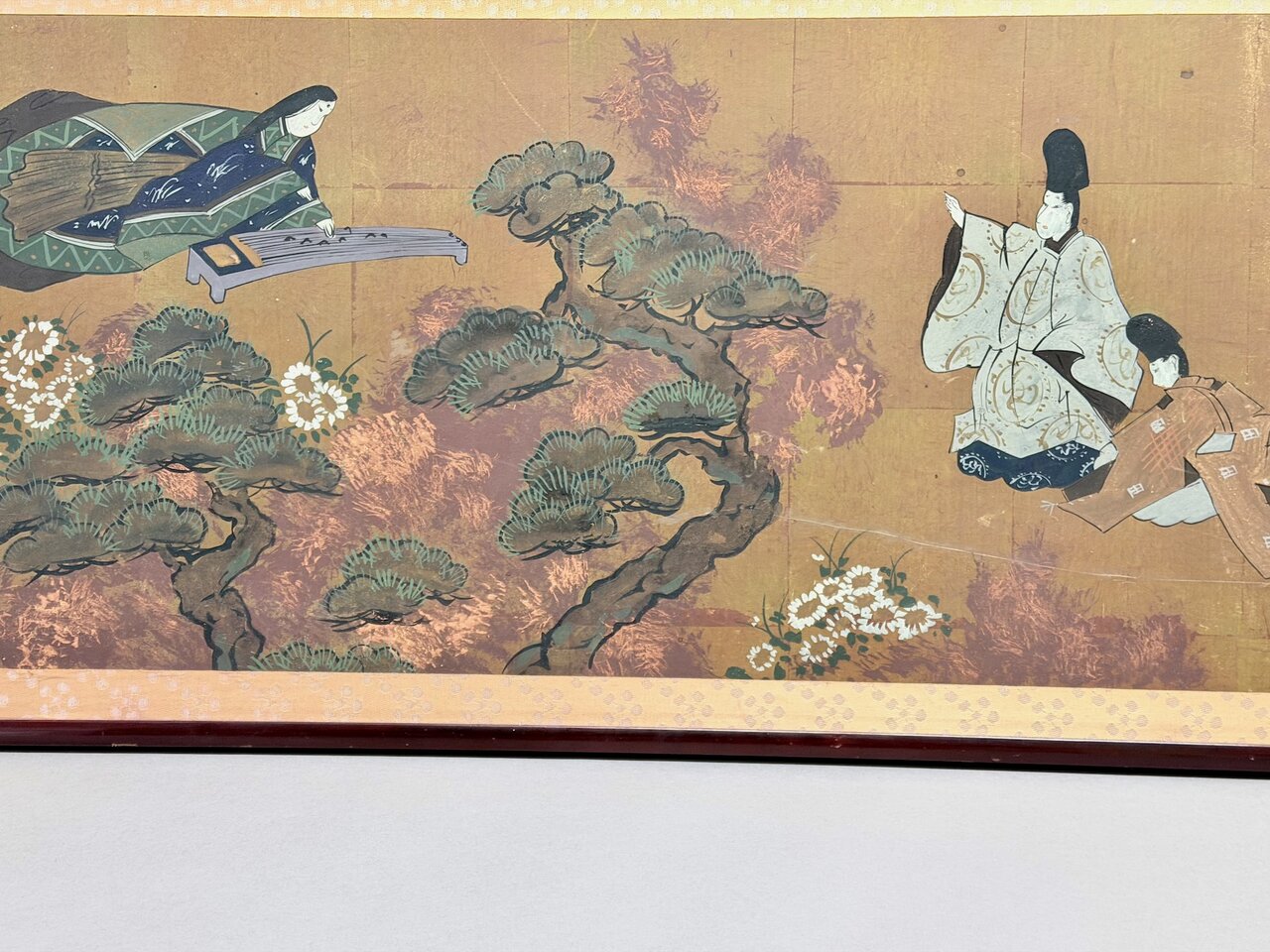 - Bld: klassisch, Seiden-Golduntergrund wie Fusuma auf Sprossenrahmen montiert