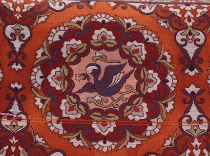 Kunstvoll bestickt, die Motive sind den Jahreszeiten geschuldet, Vögel, Blumenmotive oder viele mehr, für die Betrachter eine Augenweide.