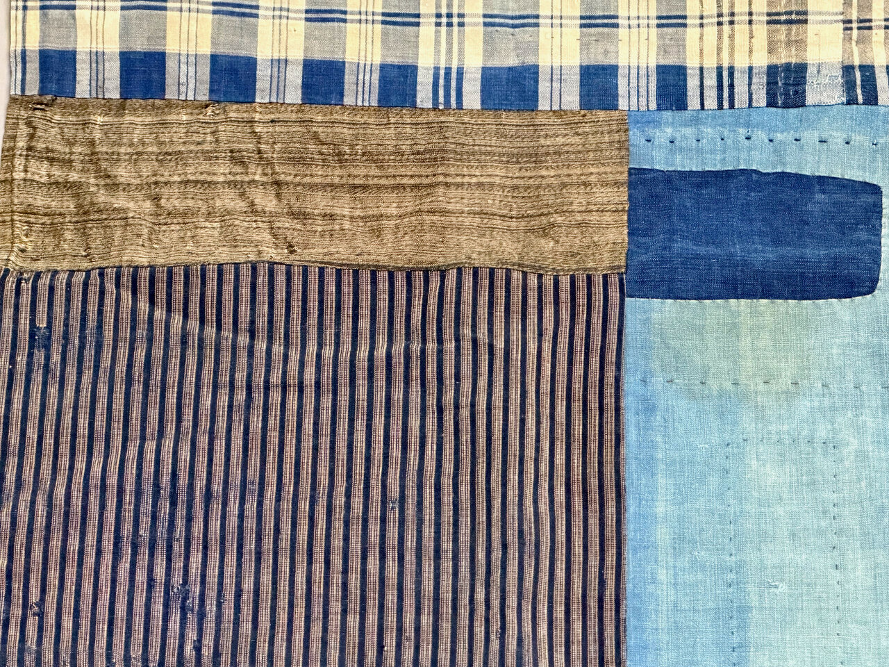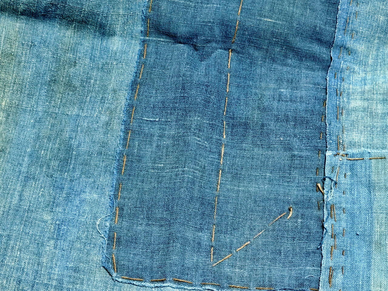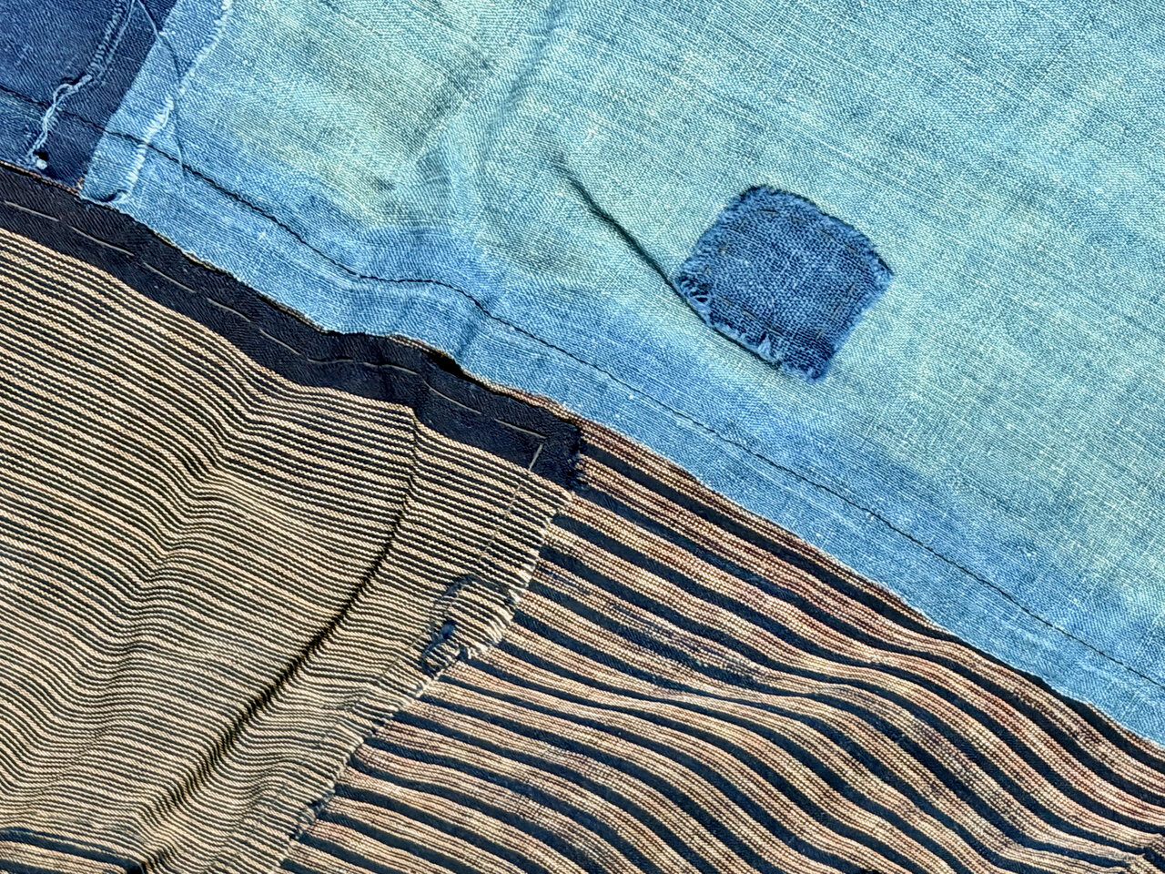- Sashiko, old fabric pieces, hand-stitched