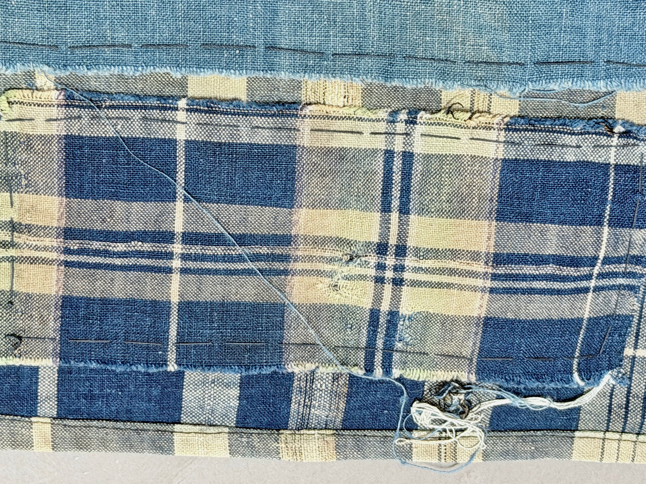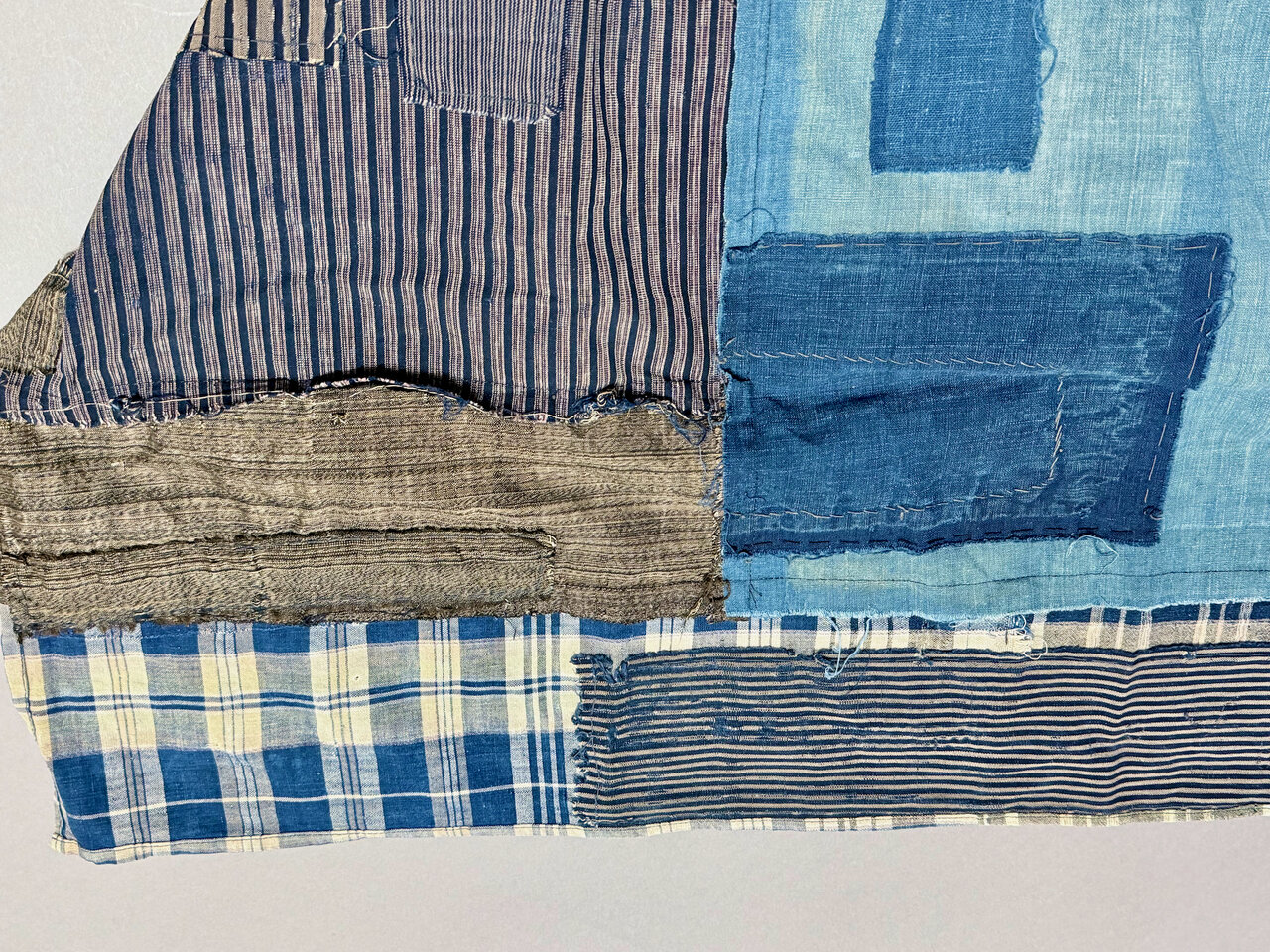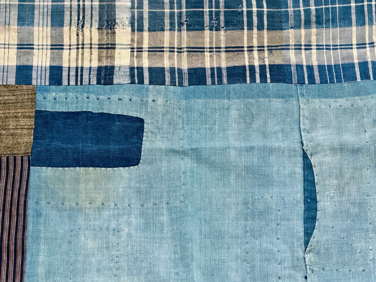 - Sashiko, old fabric pieces, hand-stitched