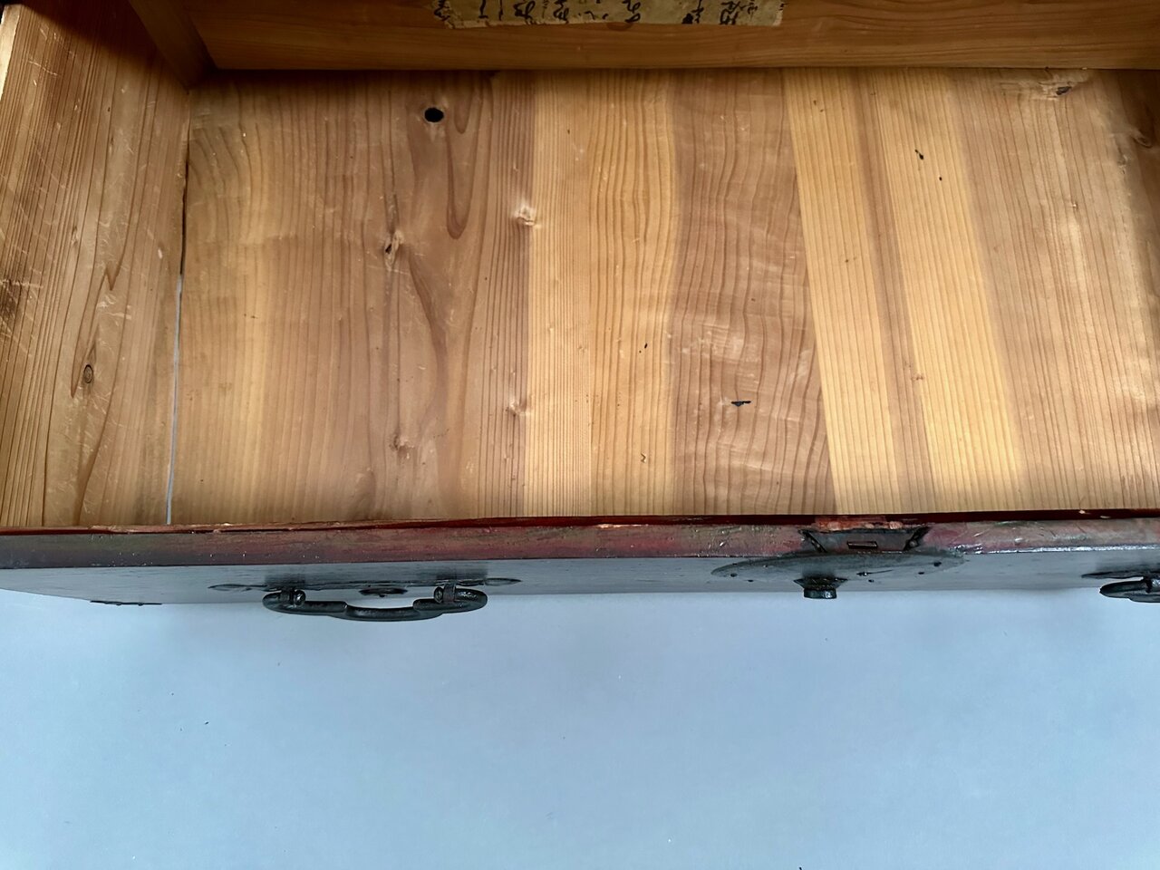 - Panneau arrière : fissures de retrait, bois inséré