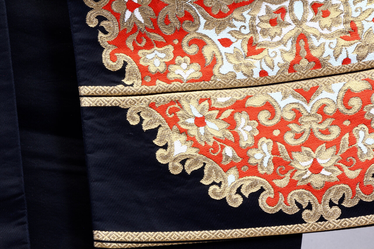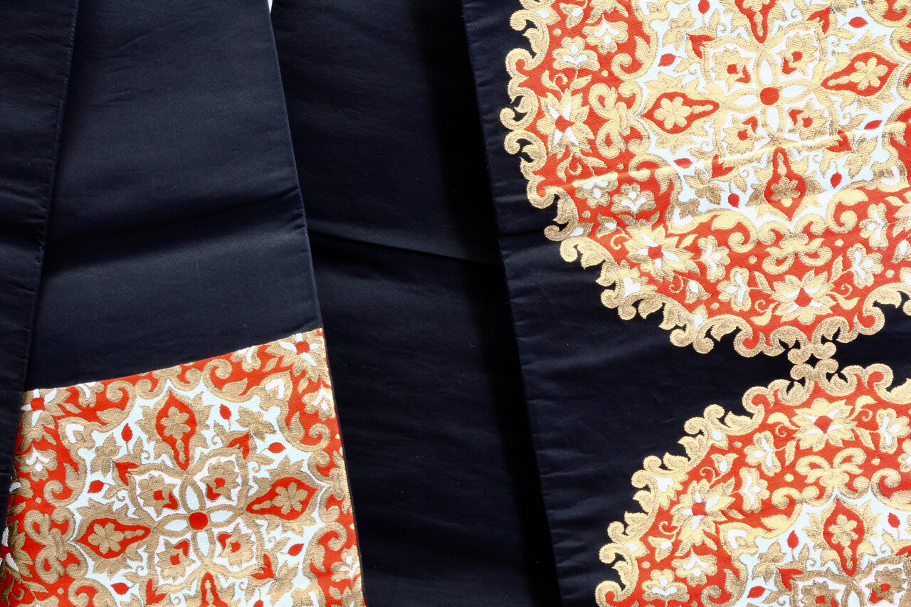 - Matériau : brocart, probablement soie
