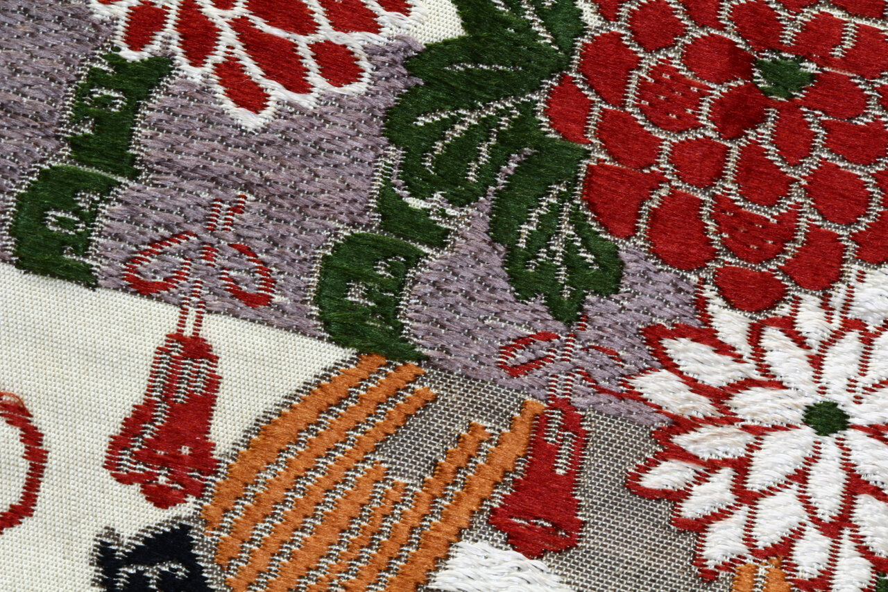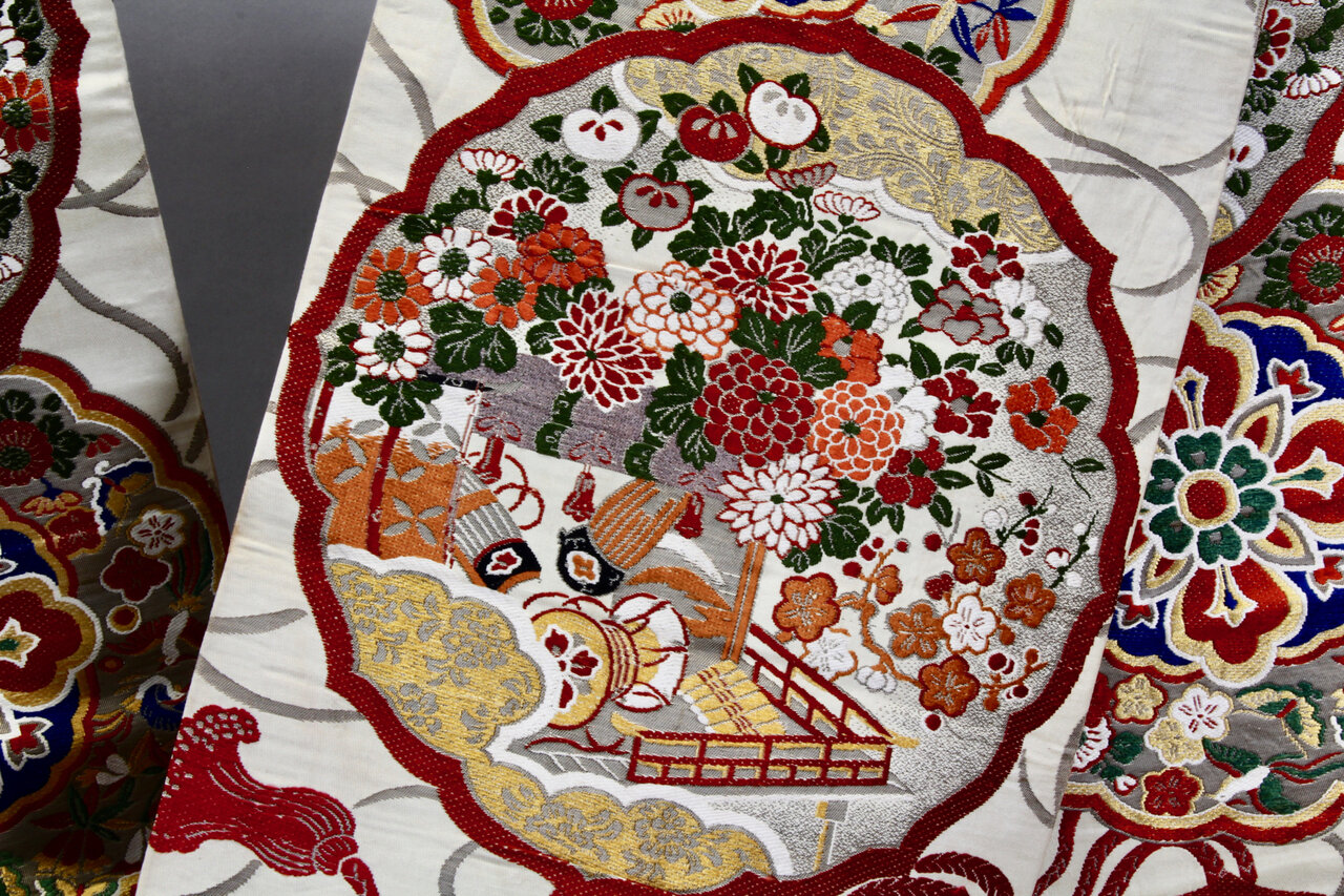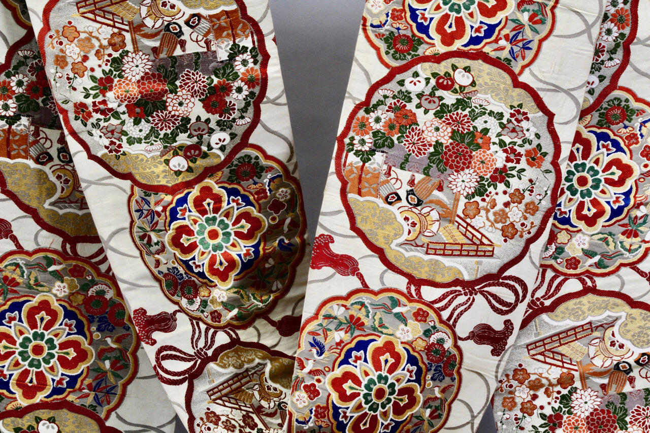 - Matériau : brocart, probablement soie